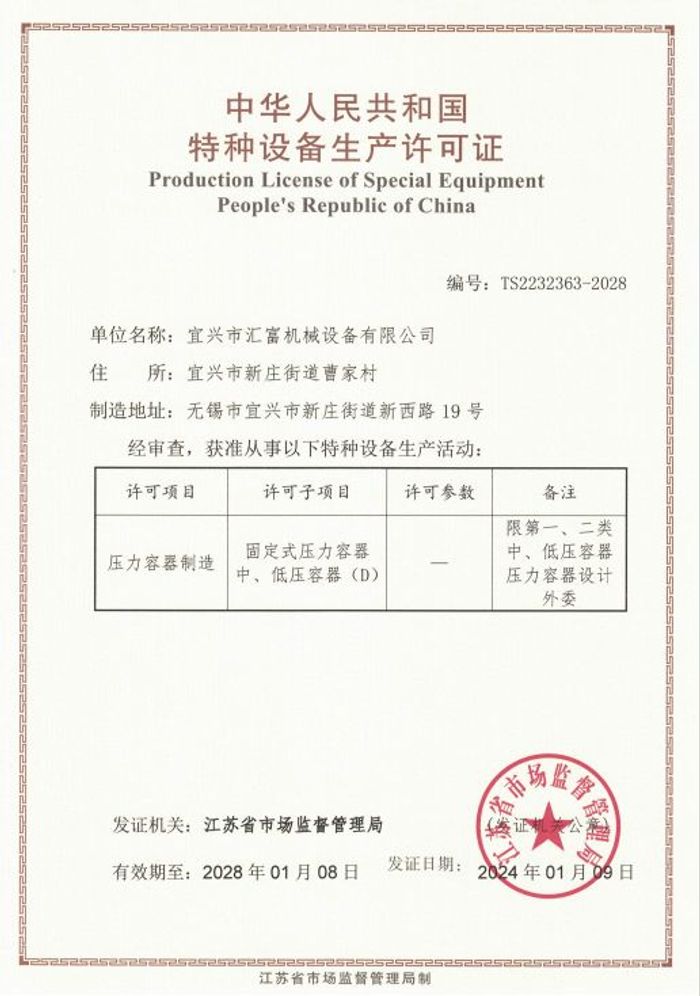 國(guó)家級(jí)特種設(shè)備制造許可證